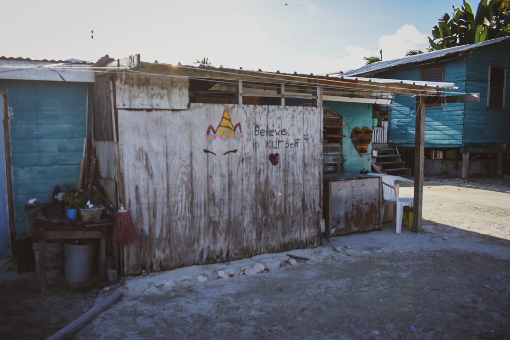 As we trekked further south, houses switched from shanties on impoverished lots to intricate homes, sophisticated, ornate, towering in size, flaunting wealth and class and prestige. Many of these homes looked unoccupied or under construction, probably vacation homes for the bourgeoisie. But a few fell between the cracks of plain ordinary, similar to the homes on other streets where local Belizeans lived.