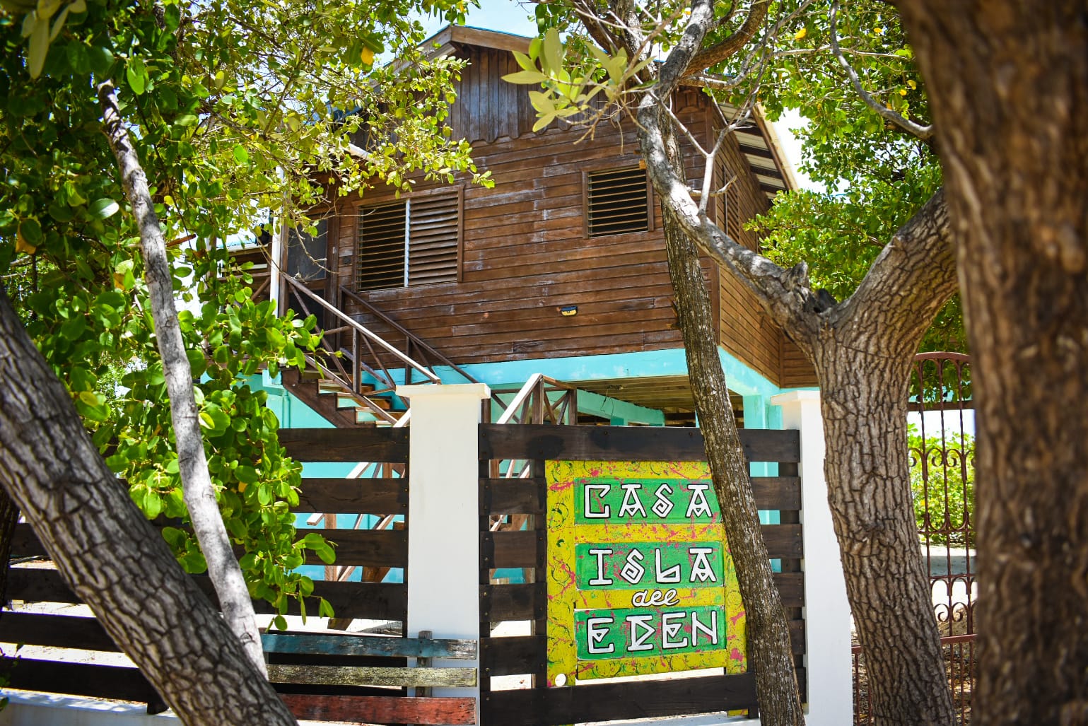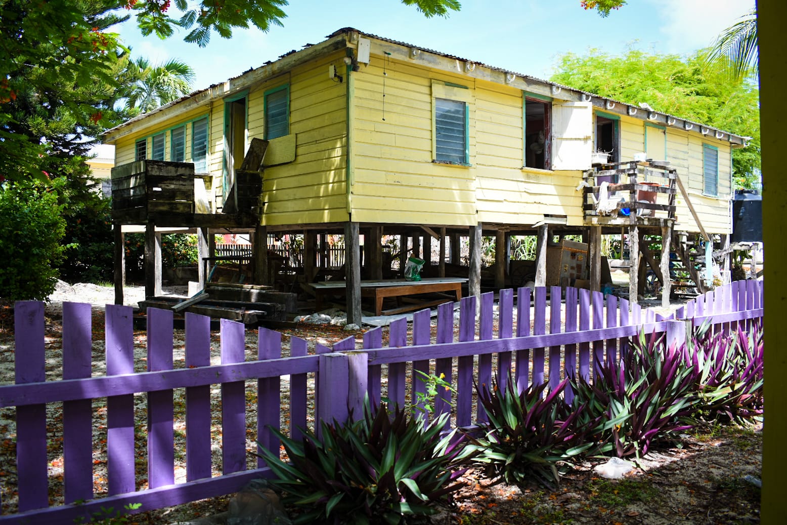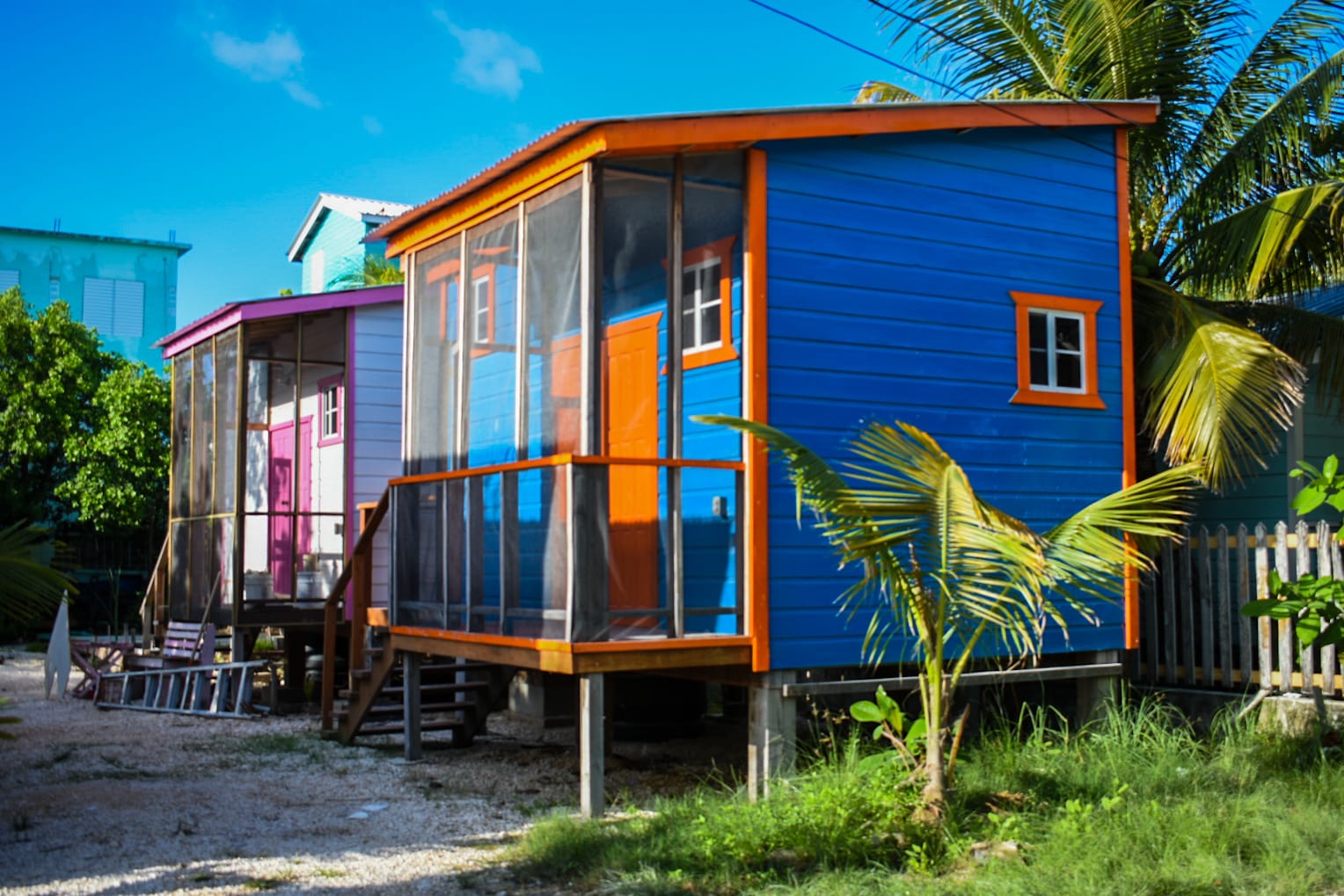 The sun boiled as we entered Eden Isle, walking by affluent homes painted a myriad of peculiar colors, bright orange, baby blue, reds, and purples. Some constructed of all concrete. Others built out of mahogany and many built on concrete stilts with a wooden frame on top, a patio, multiple stories and a metal roof. My favorite homes mixed modern construction with that of the old, village, roots where straw laden roofs like the little beach huts you'd see at the end of a dock replaced corrugated metal, giving it the island vibe.