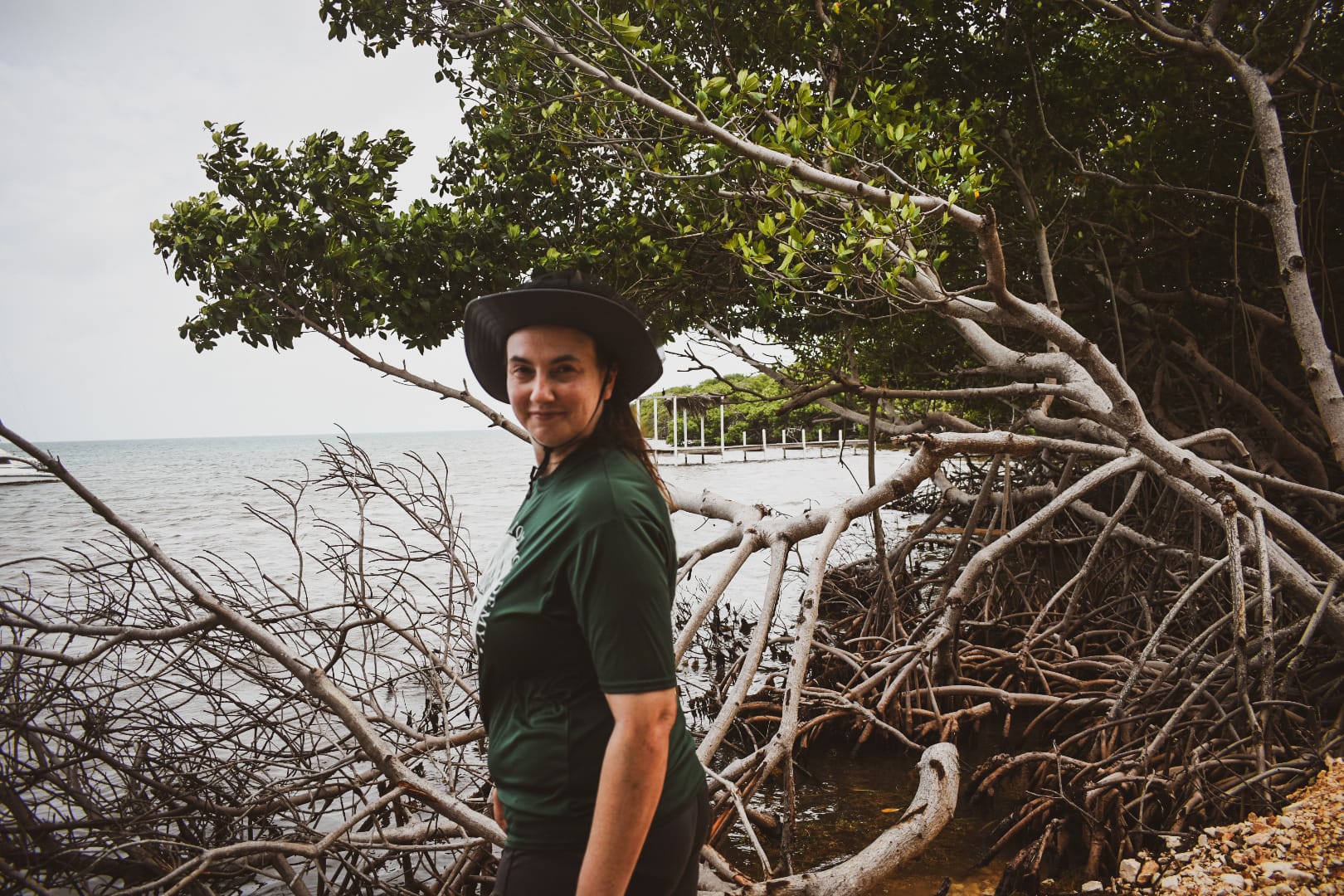 Conch shells with films of algae rested in the open alcoves of their roots as tiny fish swam about, darting between the jelly fish and seagrass. Dark colored crabs shuffled back and forth between the mangroves like dancing around open yurts.