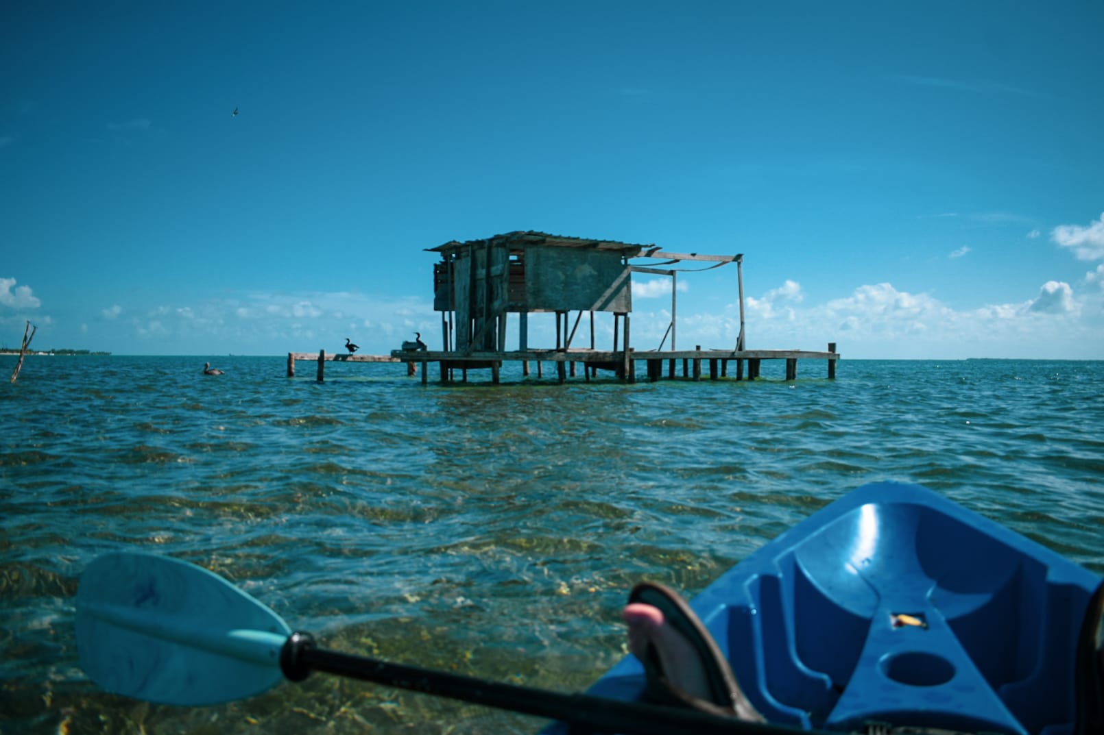 Kelly gave me a good push, and off I sailed into the deep blue, watching speedboats skip like stones, breaking the glass beneath my hull. The sapphire spread for miles, as I paddled further out into the ocean, reaching a dock that read, "KEEP OUT." I began following the coast along the mangroves where erosion had completely eradicated the shore, covering the silt fences along the beach, only seeing the nubs of each wooden post peeking out between the crash of each wave.