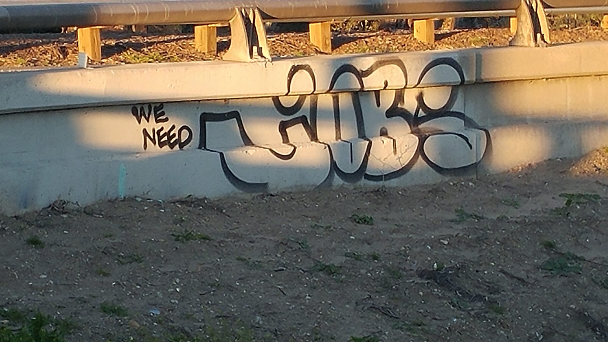 We tramped towards the overpass at the other mouth of the yard, studying it like a textbook. Junk trains all lined up awaiting departure. Railfans ruined our attempts to hideout under the bridge, as we waited patiently for their train boners to diminish. After a few snaps of their cameras, they reached their climax, and flocked back to their vehicle for the I-10. We hustled along the overpass, scurrying over the guardrail for the clearance box under the bridge. Several train tags scrawled out everywhere along the concrete covering the structure wall-to-wall. We left ours of course, scribbling them on in thick black marker.