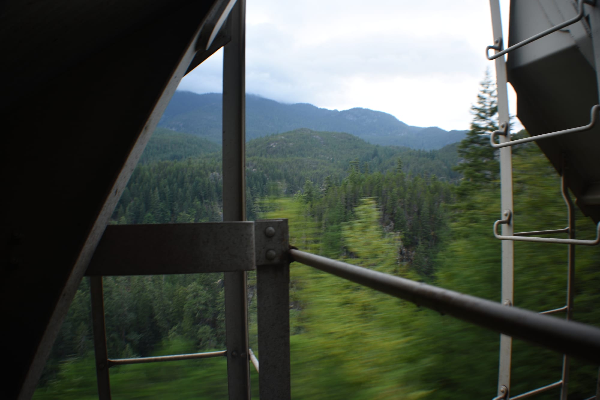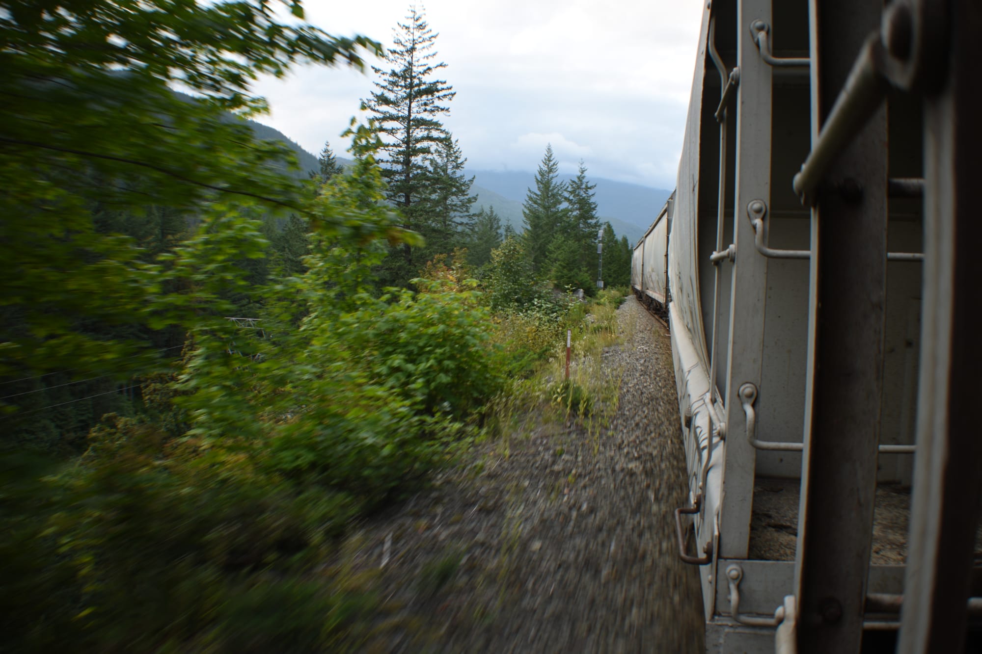 With less than twenty cars on the train, most of them unrideable gondolas with hoods, I didn't have much choice than to climb up on inside a foxhole in Squamish.