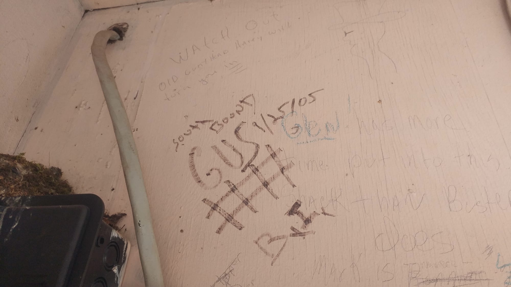 I looked down at the ballast and picked up a crushed plastic pen, joining the choir of old 90’s and early 00’s tags and monikers among the walls of the worker hut.