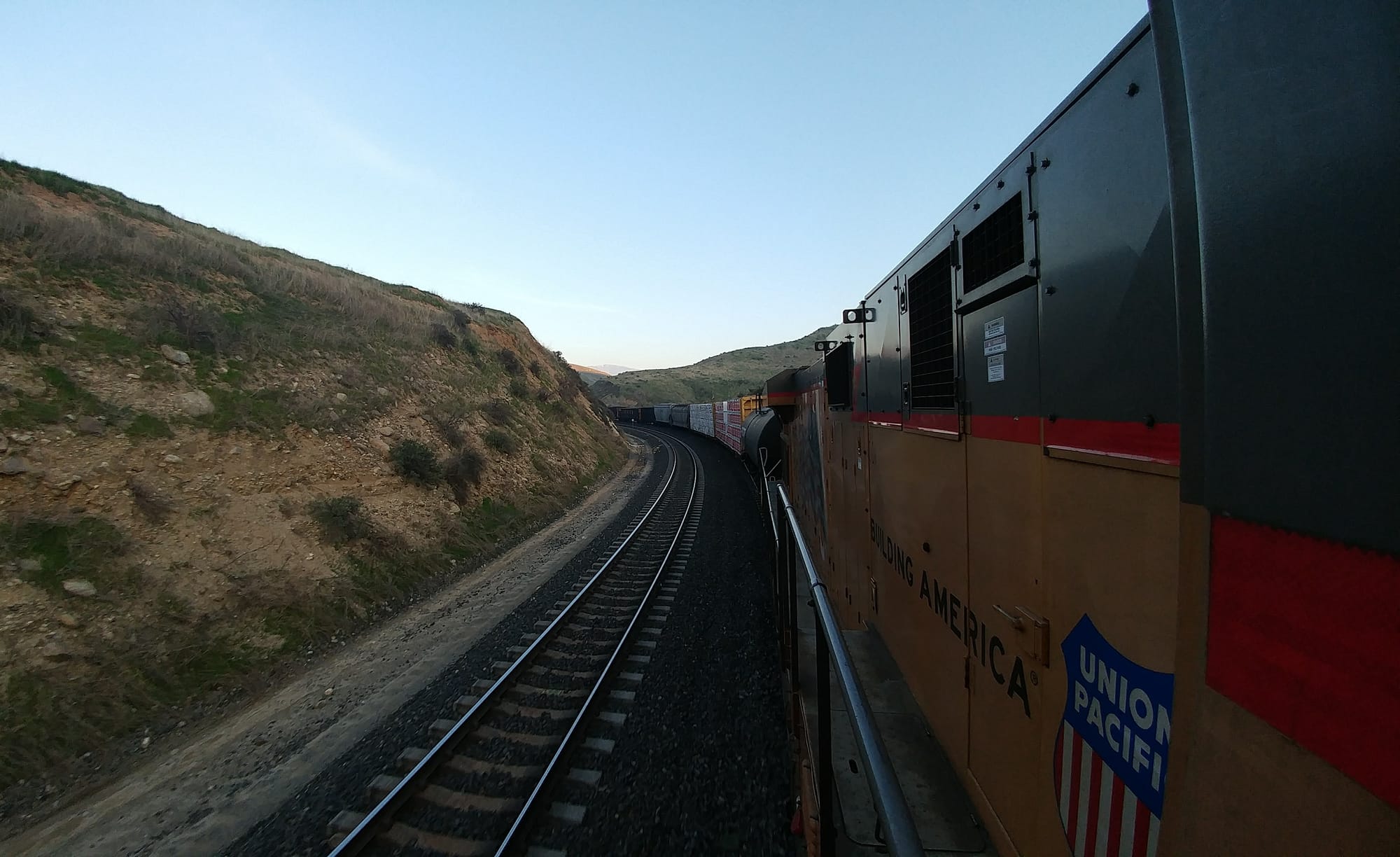 Things to know about riding on Intermodal Double Stacks (IM/DS)…these normally take priority over many other trains on the line…but that being said you should still carry plenty of water. I once sided out for 15 hours in Carrier, Oklahoma and had to hop on a passing train because I ran out of water and town was 9 miles away so I couldn’t walk to it in the heat. Don’t assume anything because you could be riding empty IMs, which are of lower priority. Mail trains, the juice train, etc. are fast hotshots, along with a few of the trains on the highline from Minneapolis to Seattle, Washington/Portland, Oregon.