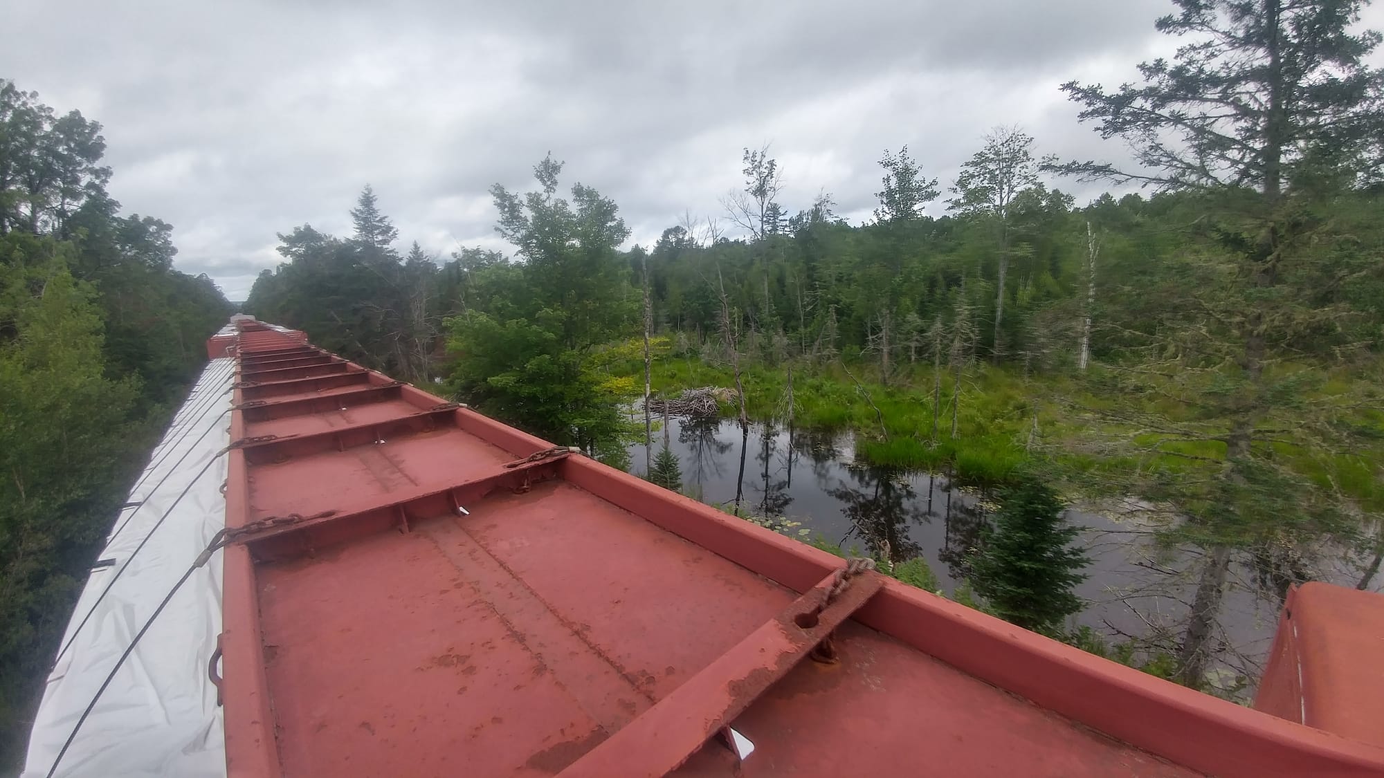 You can ride loaded lumber racks stacked three high and hide in the small space between the spine or lay on top of the stack. I’ve ridden these on several occasions riding short Class II railroad lines in the northeast. Not recommended for novice riders or for long distance travel, but if there is nothing else on the train, this is a ride.