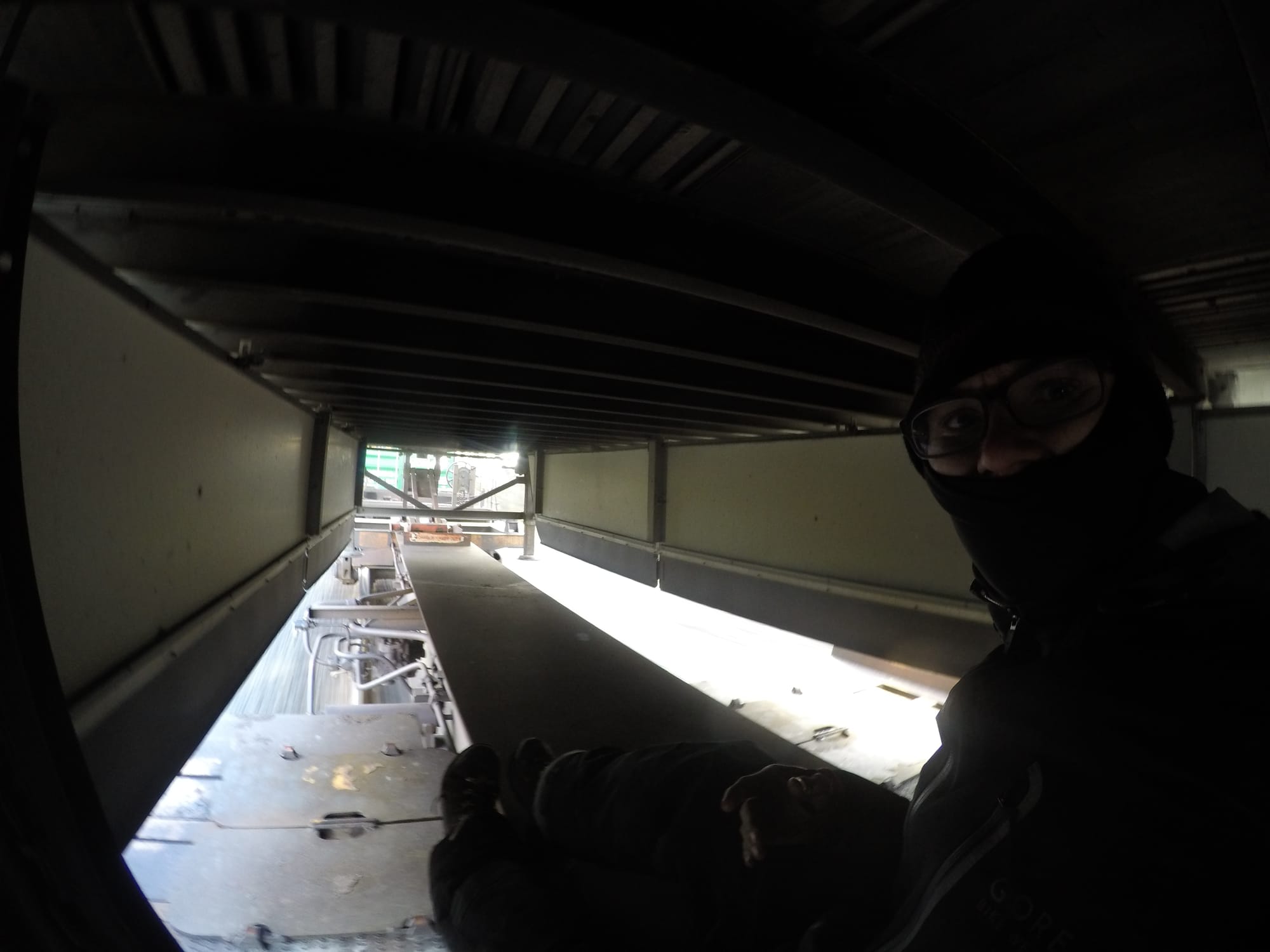 You can ride flat cars, and lumber racks if you so choose, but your chances of getting caught increase greatly while you’re out in the open. Trust me, I rode a flat car between two containers (COFC – Container on Flat Car) on a shorty IM in New Zealand and I’m really surprised no one noticed me at railroad crossings in broad daylight. With that in mind, you can ride on a TOFC (Trailer on Flat Car), specifically a piggyback or piggy for short, which is a semi-trailer on a flat car. You can ride on the spine or between the wheel well of the train, normally these are fast rides, especially if you catch the Z-train (mail train) out of the Midway Yard in Minneapolis, MN.